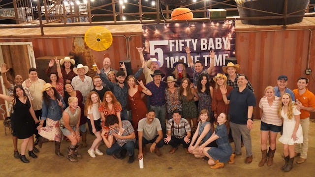 Celebrating my wife's 51st birthday. We’ve been married for 22 years. She hadn’t celebrated her 50th in 2020 so we threw an epic Texas Chic party called 50 Baby 1 More Time. The culmination was Deb lifted up over the audience in a hanging chair belting Gun’s and Roses’ “Sweet Child of Mine” at the top of her lungs.